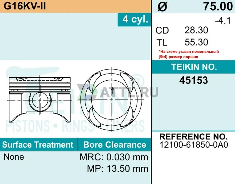 Высота поршня TL55.30