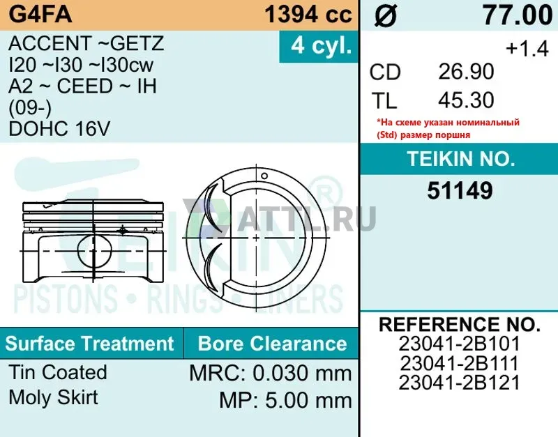 Кольца поршневые OEM #23040-2B000, 23040-2B001