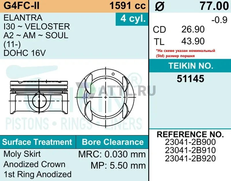 Комплект поршней G4FC-II