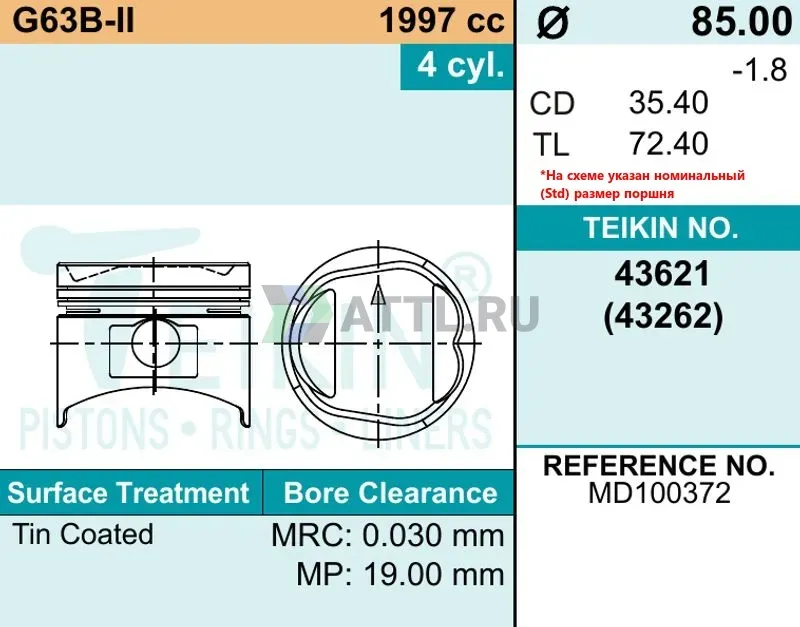 Высота поршня TL72.40