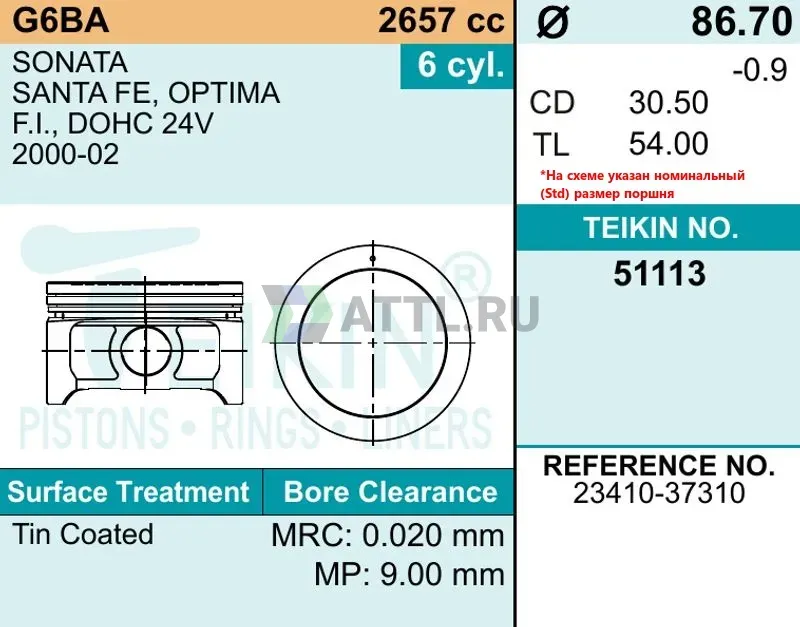 Высота поршня TL54.00