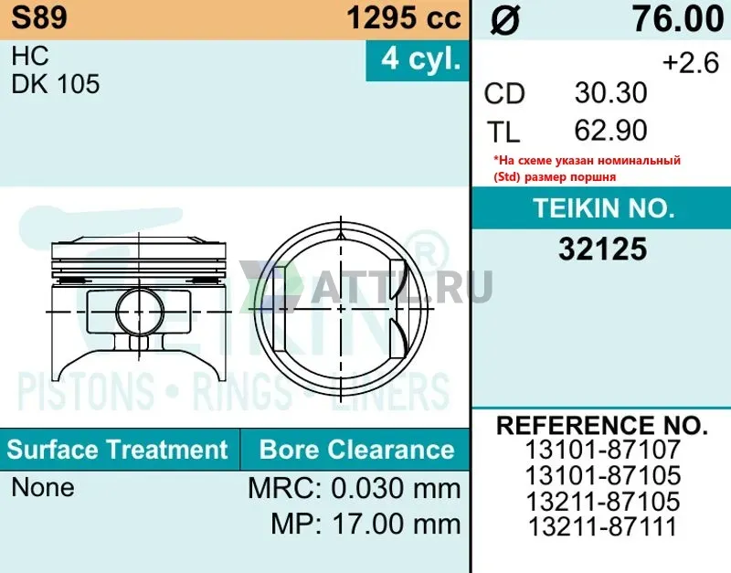 Кольца поршневые OEM #13011-87104, 13011-87105, 13011-87106, 13011-87107, 13011-87108,13011-87109, 13011-87110, 13011-87111, 13011-87112,13011-87113, 13012-87104,13012-87106, 13012-87107, 13012-87108, 1