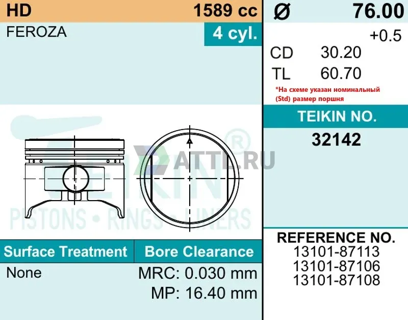 Диаметр поршня STD76.00