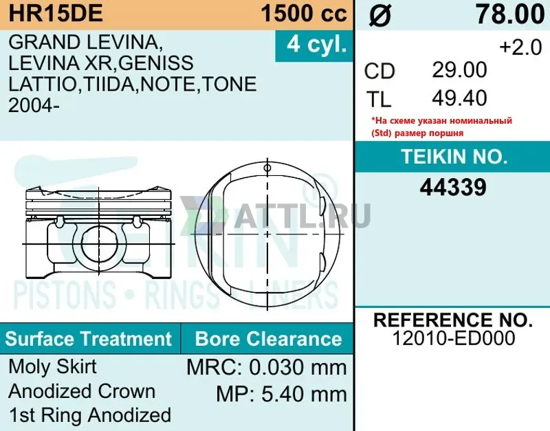 Кольца поршневые OEM #12033-ED000, 12033-EE000, 23120050