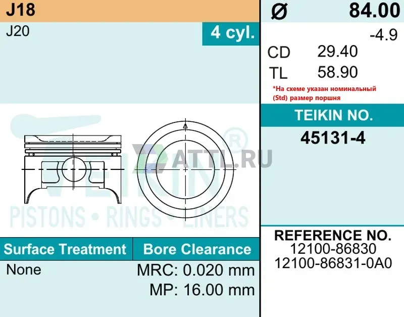 Высота поршня TL58.90