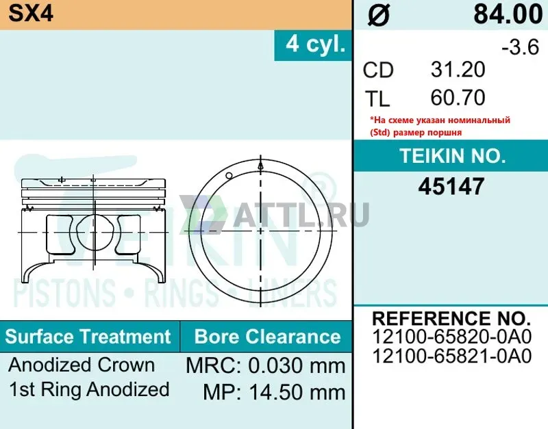 OEM кросс12100-65820, 12100-65820-0A0, 12100-65821, 12100-65821-0A0