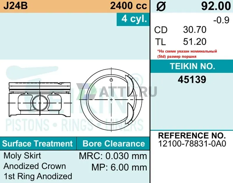 Кольца поршневые OEM #12140-78K00, 12140-78K50