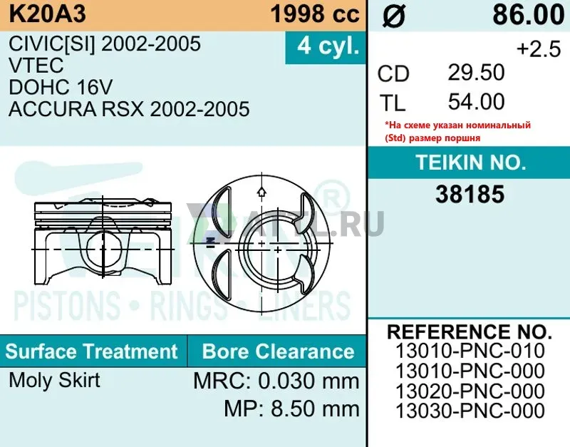 Кольца поршневые OEM #13011-PNE-G02, 13011-PNF-G01, 13011-PRA-E02, 13021-PNF-G01