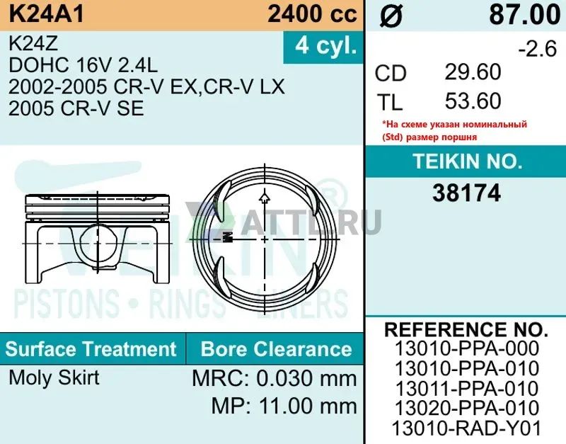 ПрименимостьK24A1 '02- STEPWGN RF3, RF7, CR-V RD5, RD6