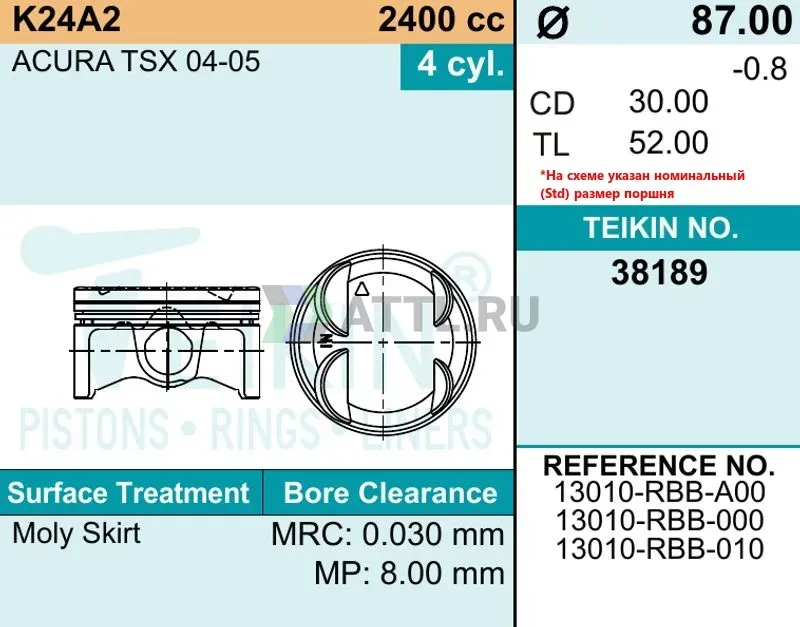 Комплект поршней K24A2