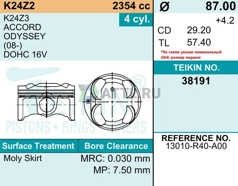 Комплект поршней K24Z2 d87 STD 1,2-1,2-2