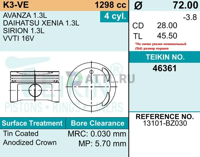 Кольца поршневые OEM #13011-B1020, 13011-BZ110, 13013-B1020