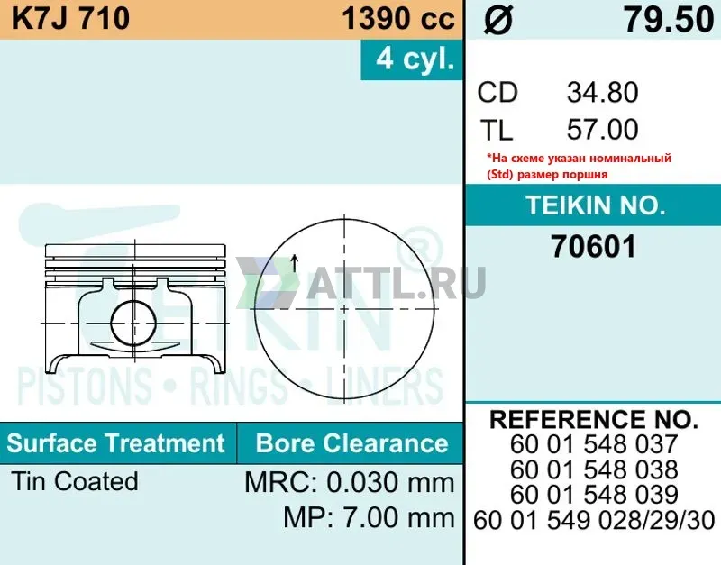 Высота поршня TL57.00
