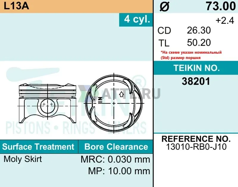 Комплект поршней L13A (-RB0-) d73+0.50 1-1-2