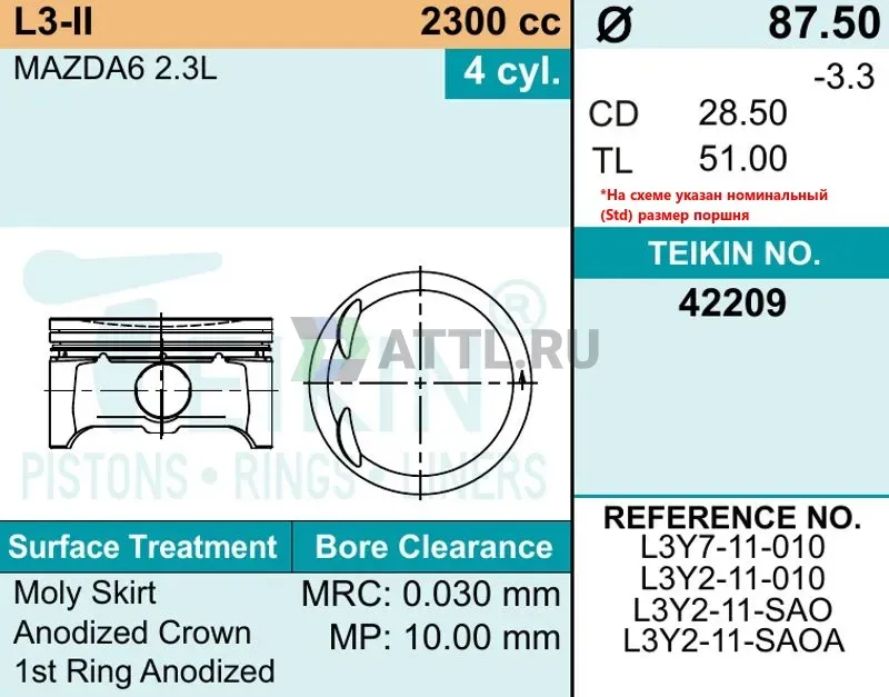 Кольца поршневые OEM #L3Y1-11-SCA, L3Y1-11-SCO, L3Y3-11-SCO, LFY1-11-SCA, LFY1-11-SCO, LFY5-11-SCO
