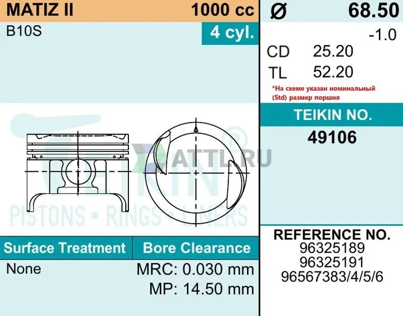 Комплект поршней MATIZ II