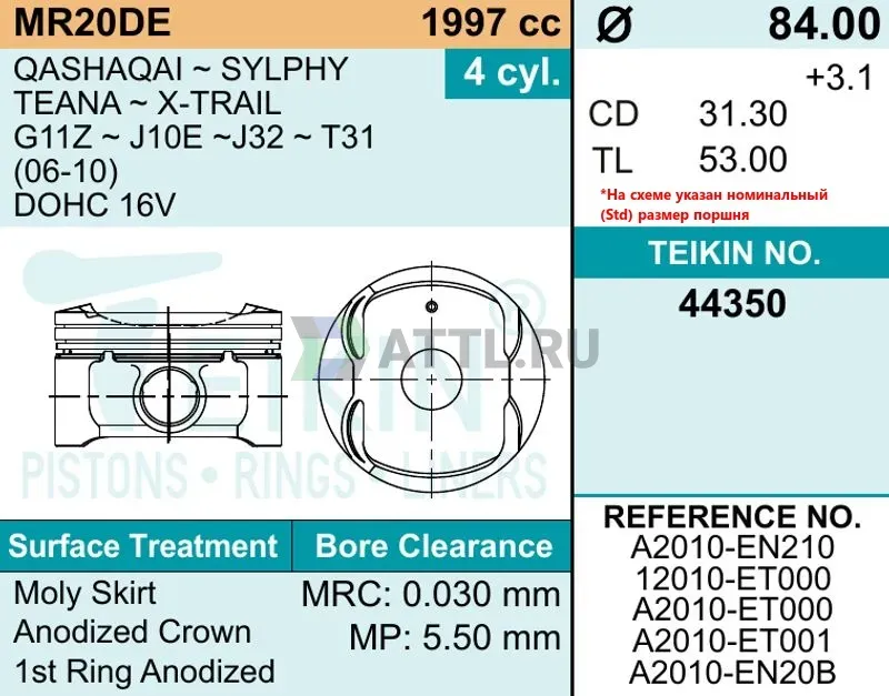 Комплект поршней MR20DE