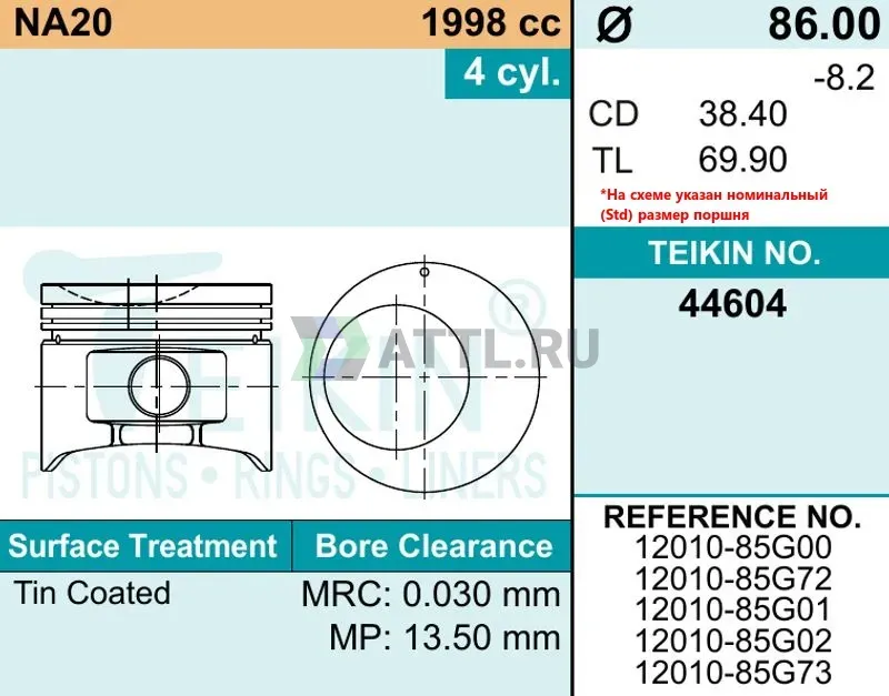 Высота поршня TL69.90