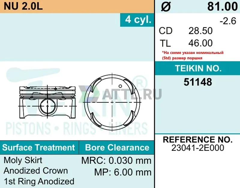 Кольца поршневые OEM #23040-2E000, 23040-2E050, 23040-2E910