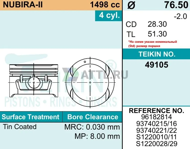 Высота поршня TL51.30