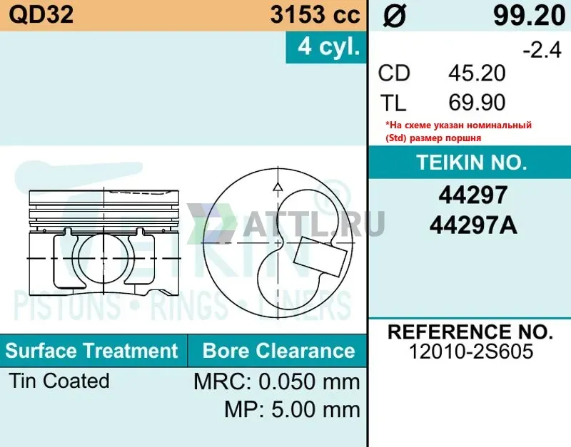 Кольца поршневые OEM #13033-43G10, 12033-43G11, 12033-54T10, 12033-54T11
