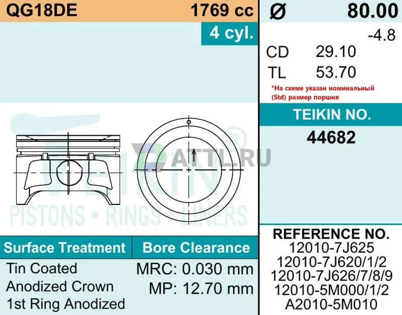 Кольца поршневые OEM #12033-5M001, 12033-5M020, 12033-7J600, 12033-7J60A,12033-8M100, 12033-AU300