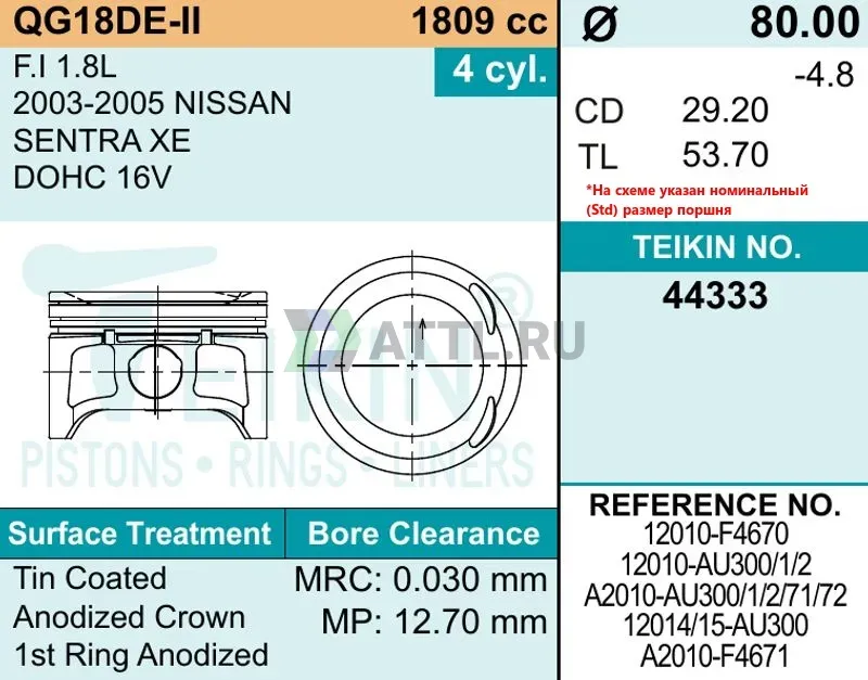 Кольца поршневые OEM #12033-5M001, 12033-5M020, 12033-7J600, 12033-7J601, 12033-7J60A, 12033-8M100