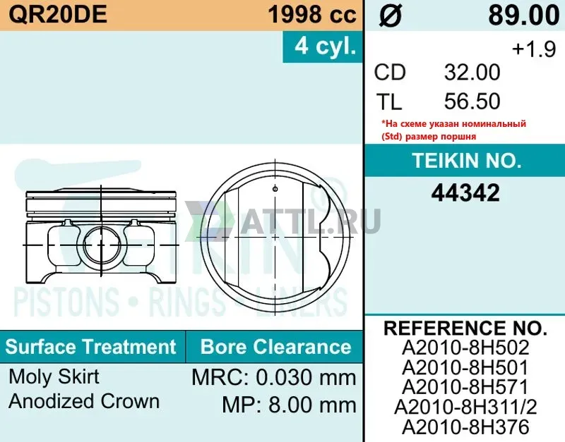 Комплект поршней QR20DE