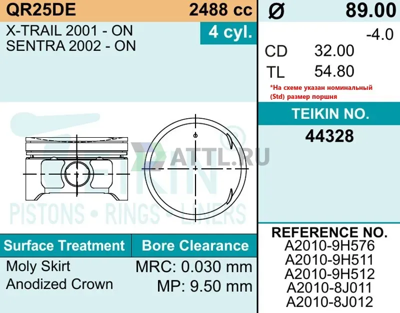 Кольца поршневые OEM #12033-5V110, 12033-8H300, 12033-8H301, 12033-9E000, 12033-9H500