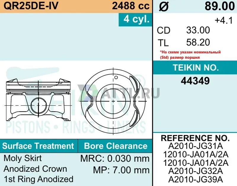 Кольца поршневые OEM #12033-JA00B, 12033-JG30A, 12035-JG30A, 12033-ET80B, 12033-JA00B, 12033-3TA0A