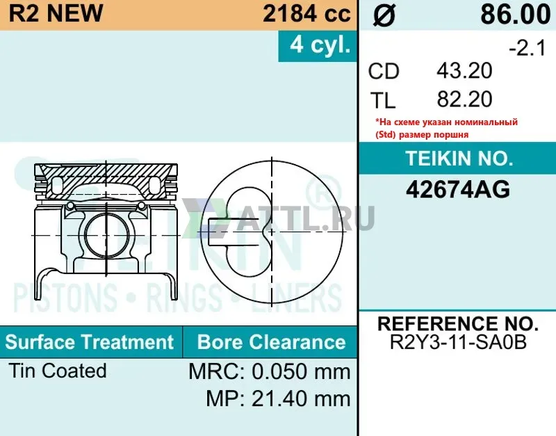 Диаметр поршня STD86.00