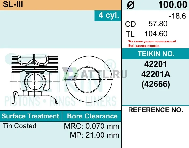 Высота поршня TL104.60