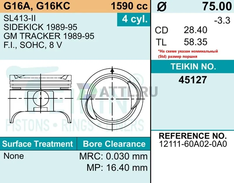 ПрименимостьG16A, G16KC, 8VALVE -'95, SL413-II