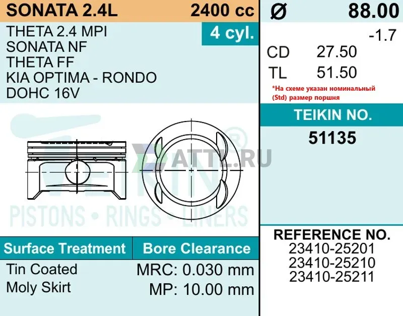 Высота поршня TL51.50