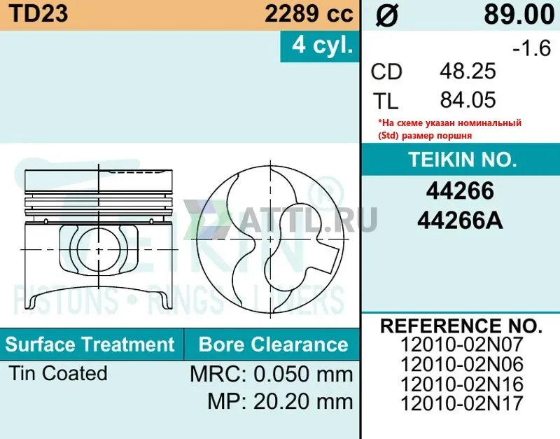 Комплект поршней TD23