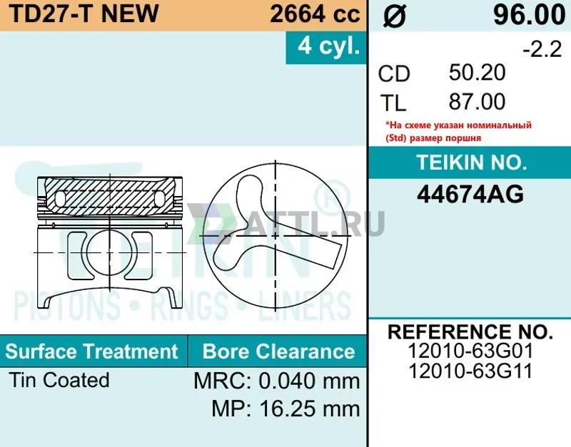 Кольца поршневые OEM #12033-31N11, 12033-37N10, 12033-63G10, 23183STD