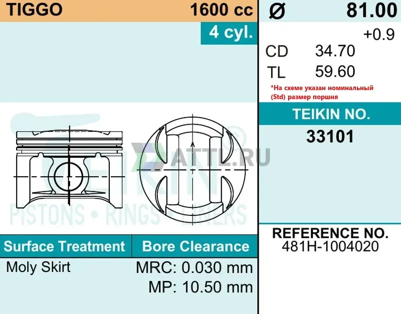 Высота поршня TL59.60