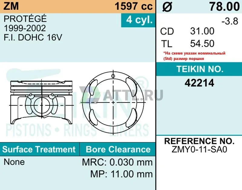 Высота поршня TL54.50