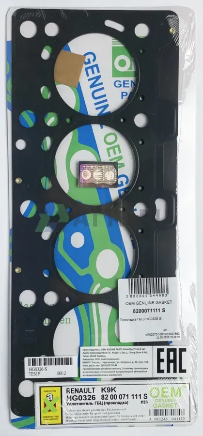 Прокладка ГБЦ K9K (HG0326-S)