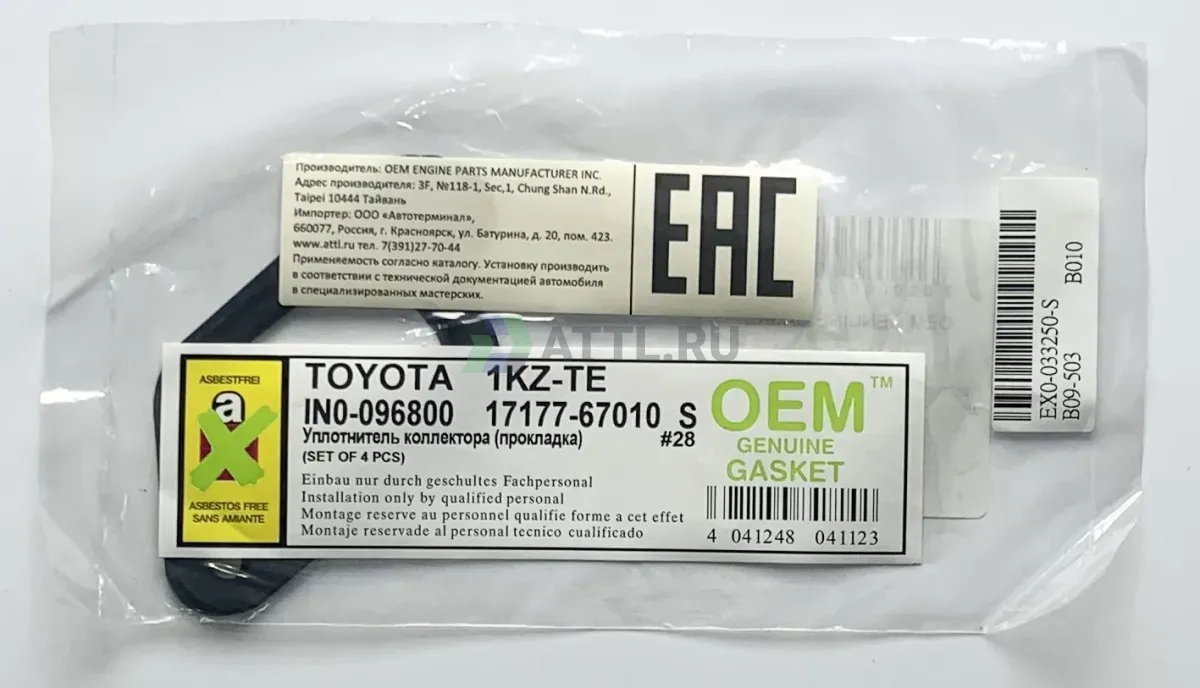 Прокладка коллектора - впуск (к-кт 4 шт.)