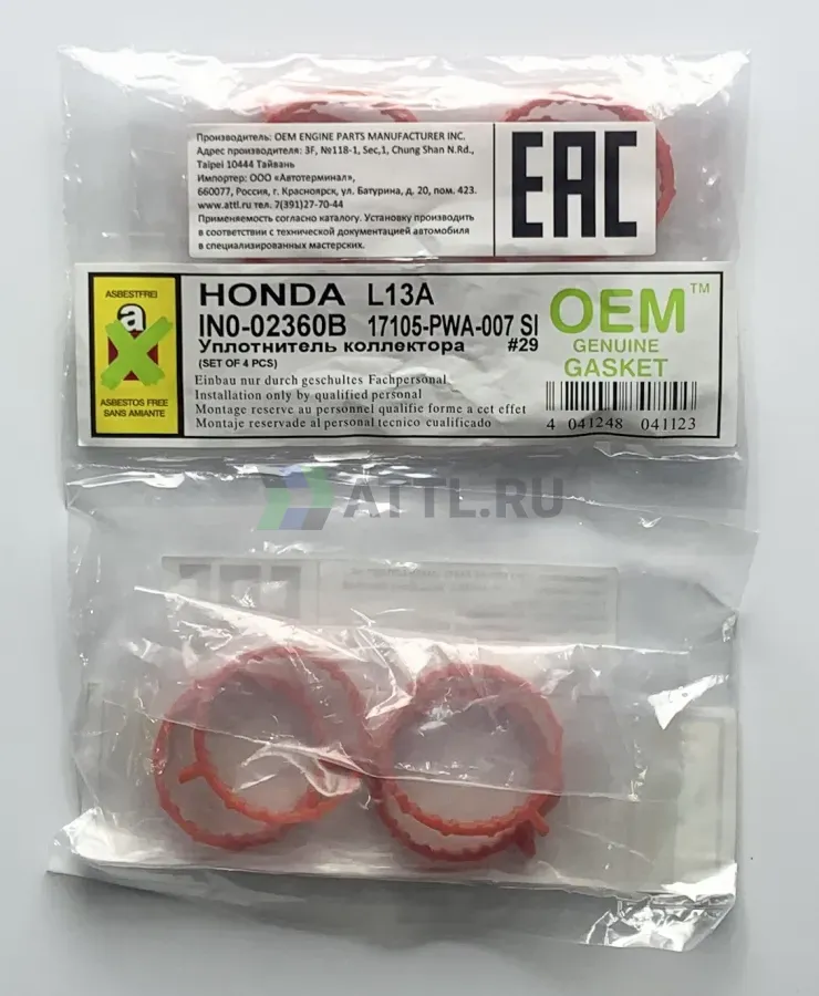 Прокладка коллектора - впуск (к-кт 4 шт.)
