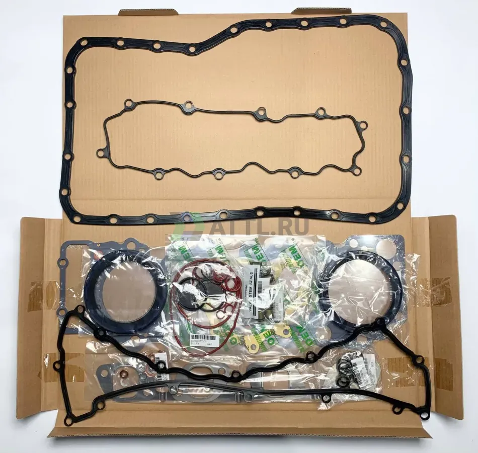 В комплект входят все необходимые уплотнители, стальная прокладка ГБЦ, прокладка крышки клапанов, сальники распредвала и коленвала, сальники клапана, прокладки коллекторов, уплотнения для топливной и охлаждающей системы двигателя.