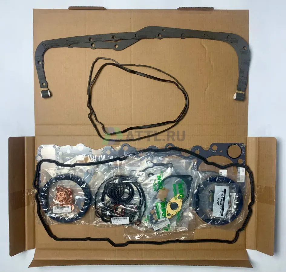 В комплект входят все необходимые уплотнители, стальная прокладка ГБЦ, прокладка крышки клапанов, сальники распредвала и коленвала, сальники клапана, прокладки коллекторов, уплотнения для топливной и охлаждающей системы двигателя.