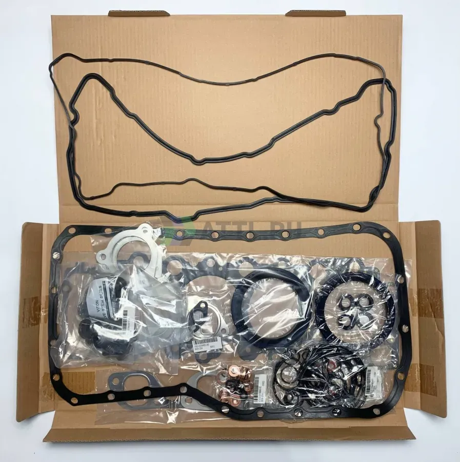 В комплект входят все необходимые уплотнители, стальная прокладка ГБЦ, прокладка крышки клапанов, сальники распредвала и коленвала, сальники клапана, прокладки коллекторов, уплотнения для топливной и охлаждающей системы двигателя.