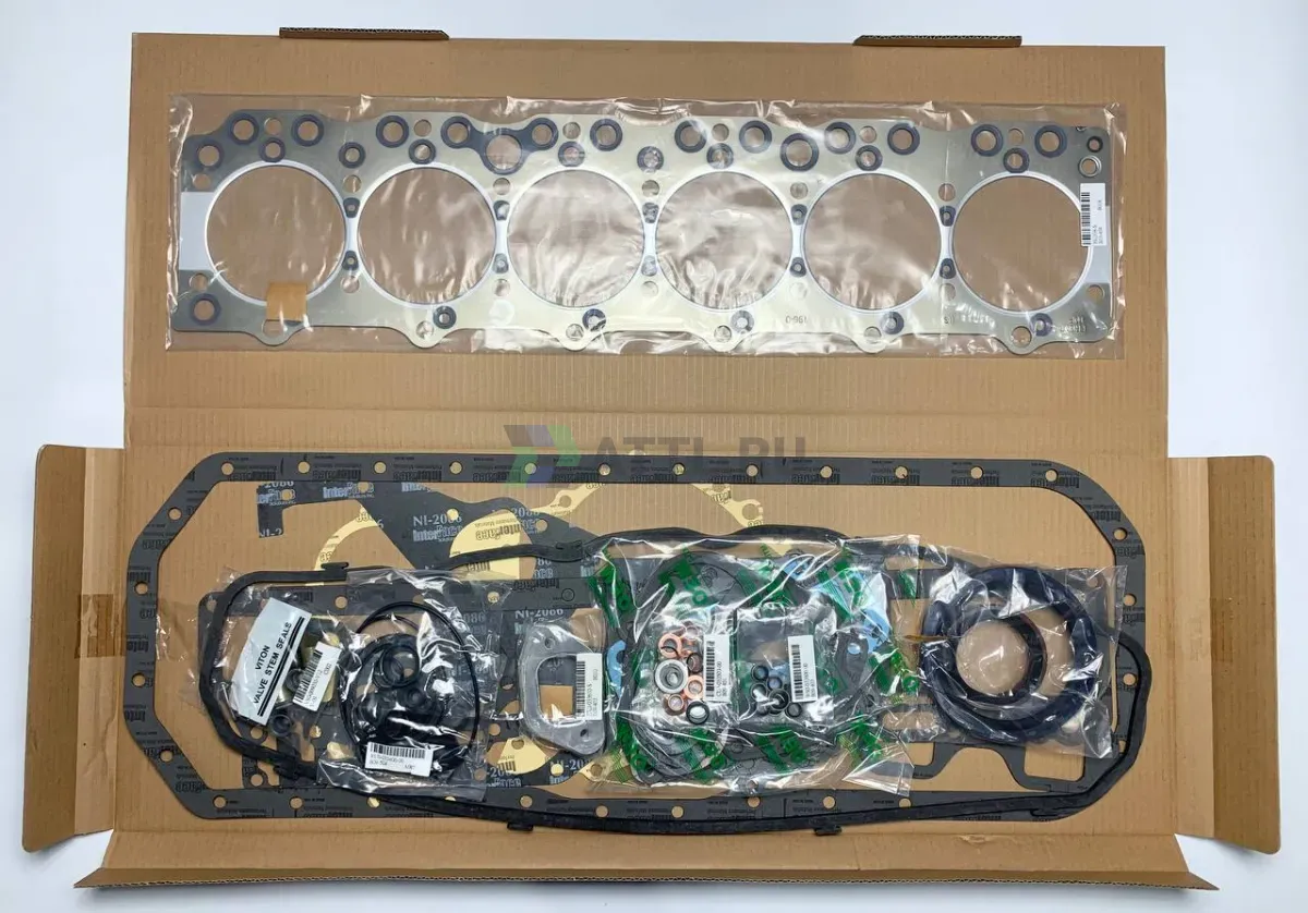 В комплект входят все необходимые уплотнители, стальная прокладка ГБЦ, прокладка крышки клапанов, сальники распредвала и коленвала, сальники клапана, прокладки коллекторов, уплотнения для топливной и охлаждающей системы двигателя.