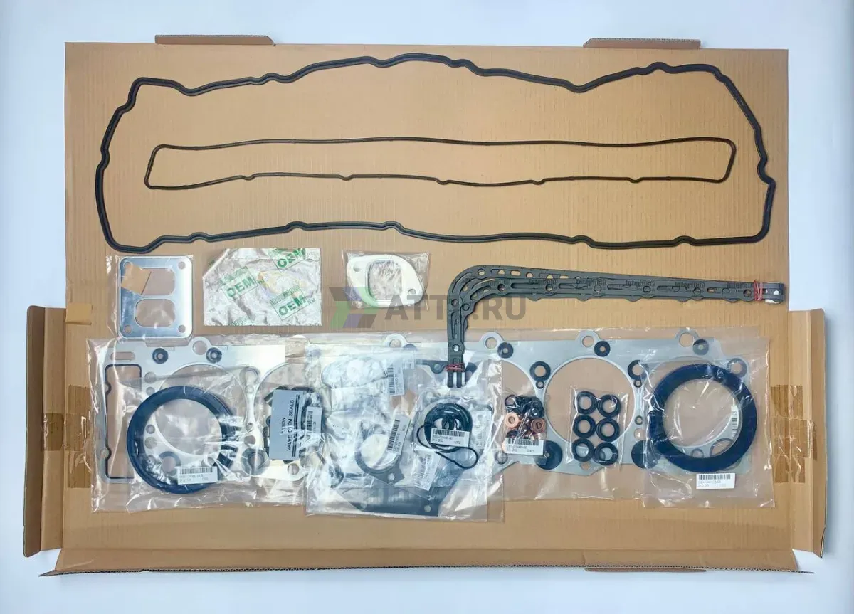 В комплект входят все необходимые уплотнители, стальная прокладка ГБЦ, прокладка крышки клапанов, сальники распредвала и коленвала, сальники клапана, прокладки коллекторов, уплотнения для топливной и охлаждающей системы двигателя.