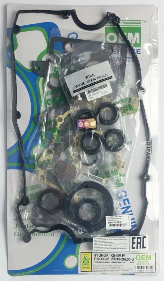 В комплект входят все необходимые уплотнители, графитовая прокладка ГБЦ, прокладка крышки клапанов, сальники распредвала и коленвала, сальники клапана, прокладки коллекторов, уплотнения для топливной и охлаждающей системы двигателя.