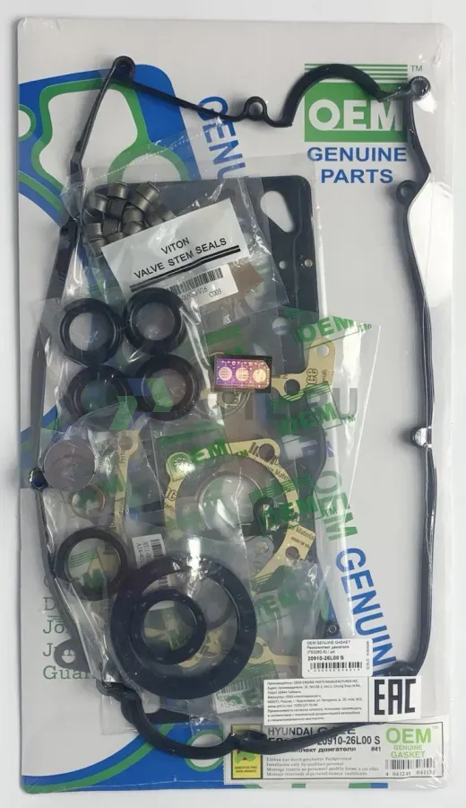 В комплект входят все необходимые уплотнители, стальная прокладка ГБЦ, прокладка крышки клапанов, сальники распредвала и коленвала, сальники клапана, прокладки коллекторов, уплотнения для топливной и охлаждающей системы двигателя.