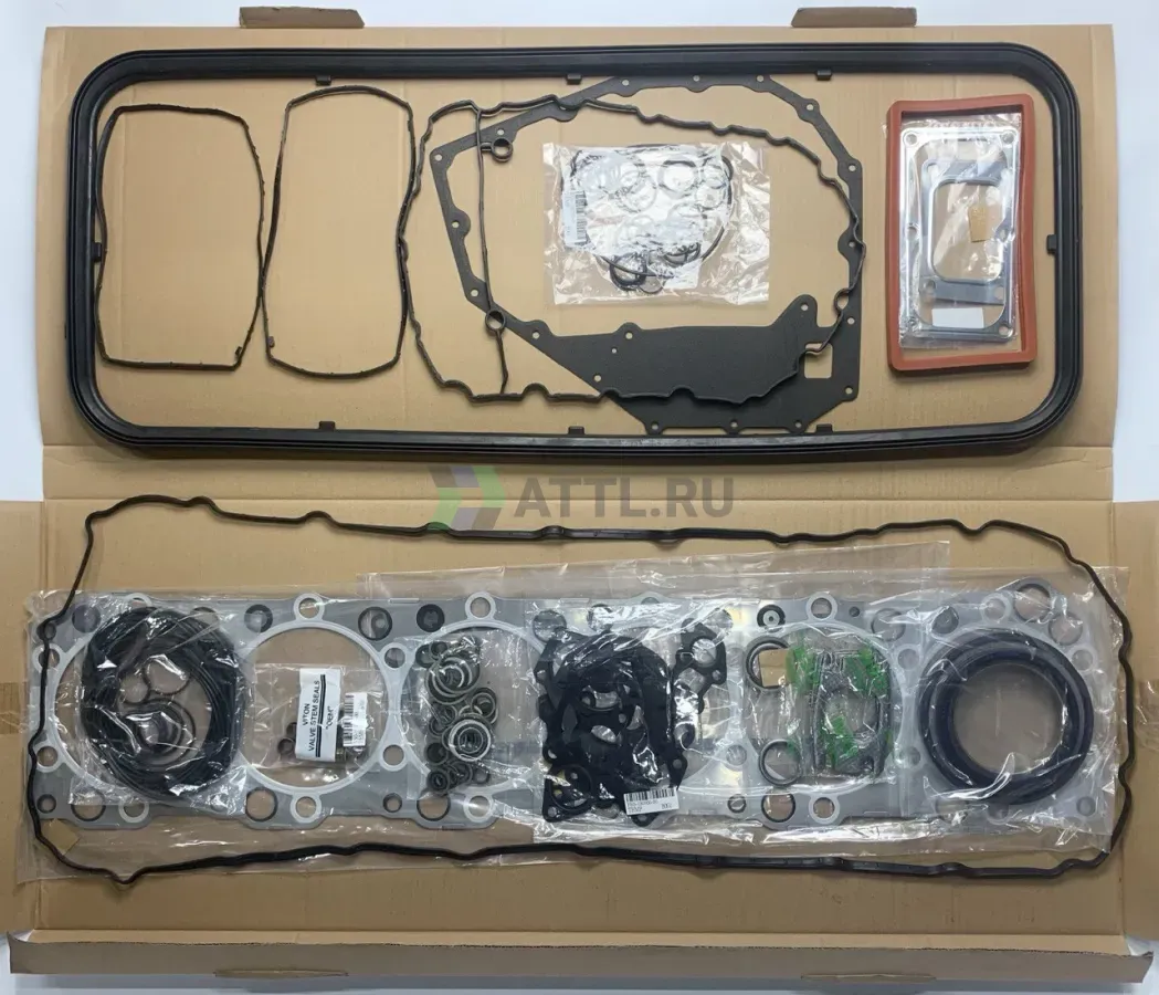 В комплект входят все необходимые уплотнители, стальная прокладка ГБЦ, прокладка крышки клапанов, сальники распредвала и коленвала, сальники клапана, прокладки коллекторов, уплотнения для топливной и охлаждающей системы двигателя.