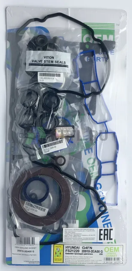 В комплект входят все необходимые уплотнители, графитовая прокладка ГБЦ, прокладка крышки клапанов, сальники распредвала и коленвала, сальники клапана, прокладки коллекторов, уплотнения для топливной и охлаждающей системы двигателя.